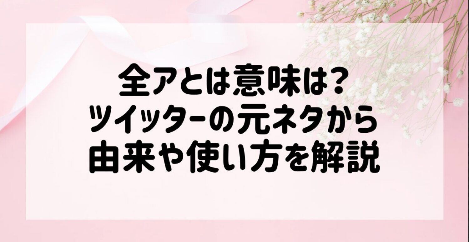 全アとは何か!?今更聞けない…でも全アはどの界隈でも有名な言葉…